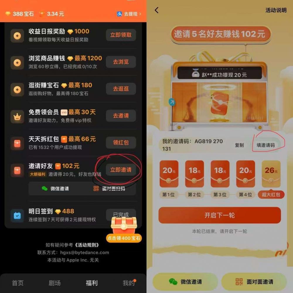 填完邀请码,必须看5分钟小说,新用户送1元,截图提交;老用户送番茄币,不收,可以放弃了
